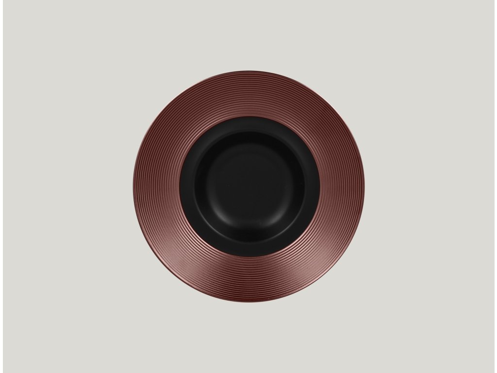 Porcelánový hluboký talíř s kruhovým reliéfem v bronzovém dekoru a tajemně černým středem dodává vkusnou a elegantní atmosféru. Vaše hosty ohromí, zaujme a zpříjemní jim gastronomický zážitek. Prvotřídní porcelán zaručuje kromě svého atraktivního designu také svou odolnost a kvalitní zpracování.Gourmet hluboký talíř 26 cm, bronzový