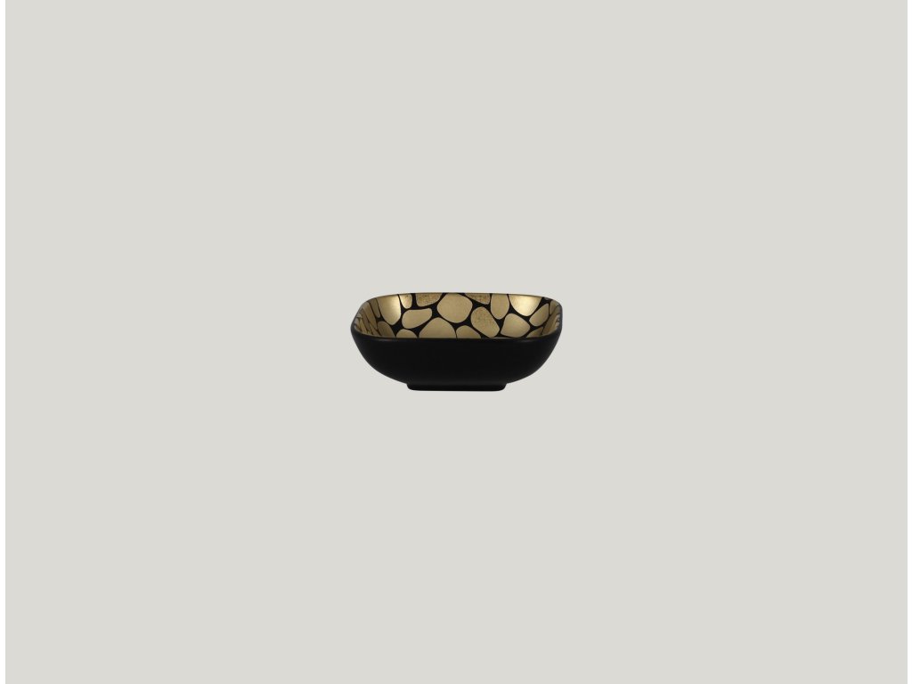 Miska s designovým dekorem vykreslujícím oblázky, které připomínají tisíce zářících sluncí. Kombinace zlatočerné dodává na luxusní atmosféře, která potěší a povznese gastronomické prožitky do slastných výšin nebes. Kvalitně zpracovaný porcelán zaručuje odolnost a dlouhodobou živostnost. Misku využijete pro podávání vašeho kulinářského umění všeho druhu.Miska čtvercová 11 × 11 cm