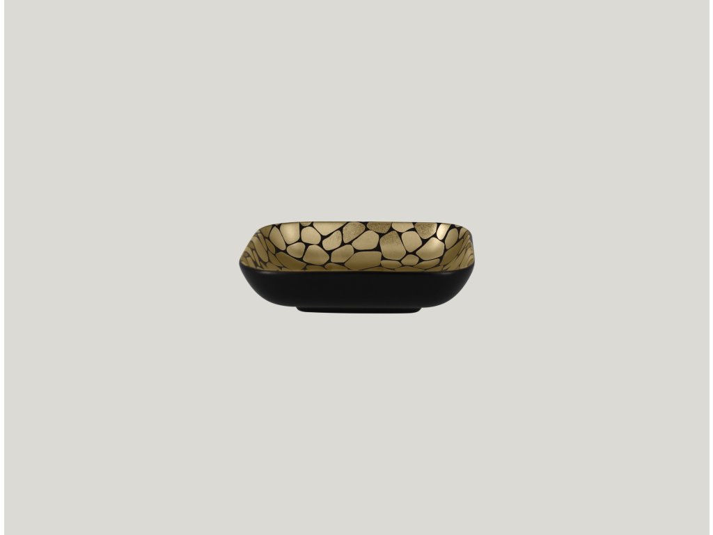Miska s designovým dekorem vykreslujícím oblázky, které připomínají tisíce zářících sluncí. Kombinace zlatočerné dodává na luxusní atmosféře, která potěší a povznese gastronomické prožitky do slastných výšin nebes. Kvalitně zpracovaný porcelán zaručuje odolnost a dlouhodobou živostnost. Misku využijete pro podávání vašeho kulinářského umění všeho druhu.Miska čtvercová 15 × 15 cm