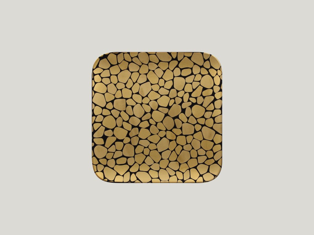 Mělký talíř s designovým dekorem vykreslujícím oblázky, které připomínají tisíce zářících sluncí. Kombinace zlatočerné dodává na luxusní atmosféře, která potěší a povznese gastronomické prožitky do slastných výšin nebes. Kvalitně zpracovaný porcelán zaručuje odolnost a dlouhodobou živostnost. Talíř využijete pro podávání vašeho kulinářského umění všeho druhu.Talíř mělký 22 × 22 cm