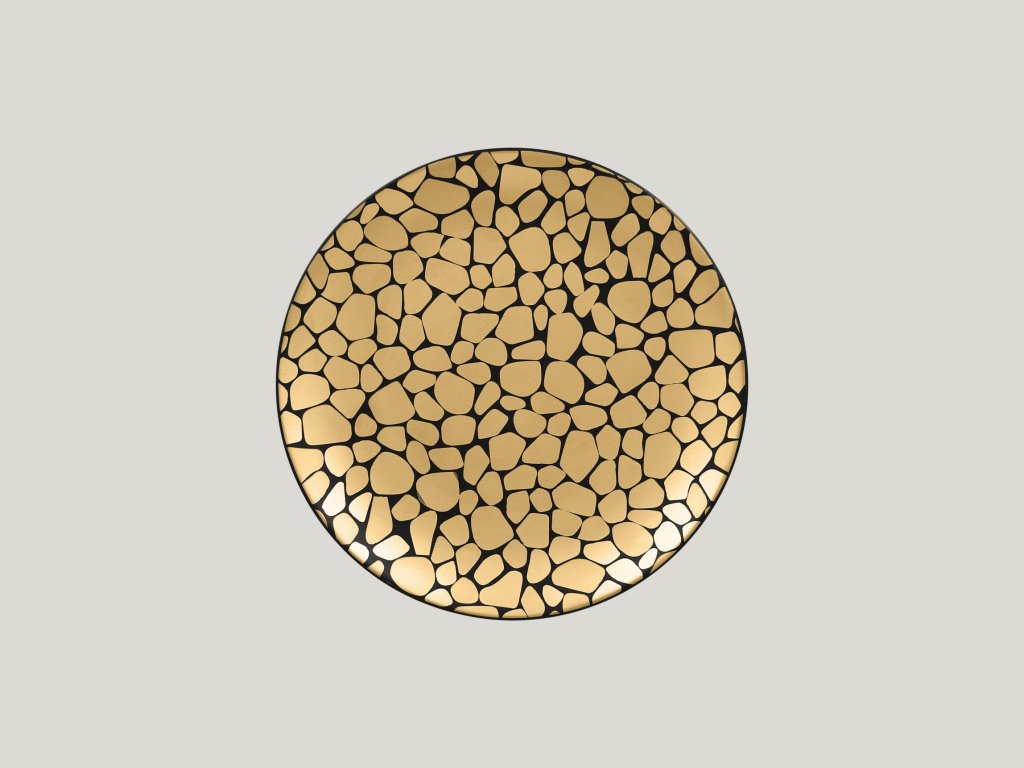 Mělký talíř s designovým dekorem vykreslujícím oblázky, které připomínají tisíce zářících sluncí. Kombinace zlatočerné dodává na luxusní atmosféře, která potěší a povznese gastronomické prožitky do slastných výšin nebes. Kvalitně zpracovaný porcelán zaručuje odolnost a dlouhodobou živostnost. Talíř využijete pro podávání vašeho kulinářského umění všeho druhu.Talíř mělký 24 cm