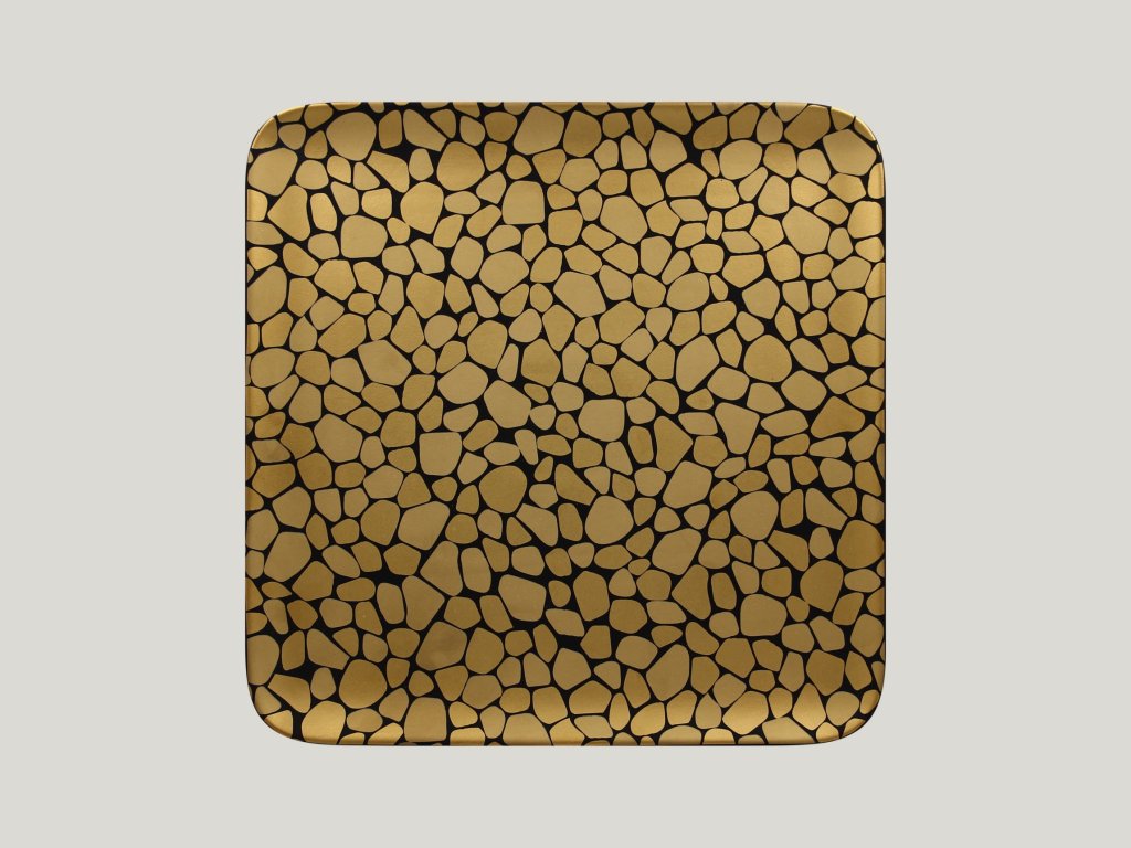 Mělký talíř s designovým dekorem vykreslujícím oblázky, které připomínají tisíce zářících sluncí. Kombinace zlatočerné dodává na luxusní atmosféře, která potěší a povznese gastronomické prožitky do slastných výšin nebes. Kvalitně zpracovaný porcelán zaručuje odolnost a dlouhodobou živostnost. Talíř využijete pro podávání vašeho kulinářského umění všeho druhu.Talíř mělký 30 × 30 cm