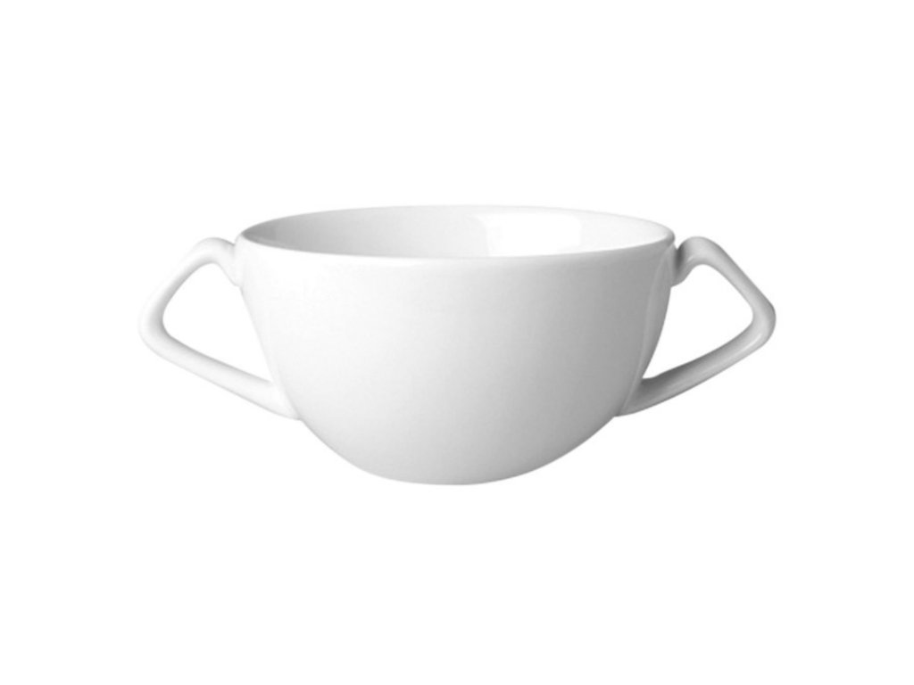 Šálek s oušky v bílém odstínu slonové kosti zdobený jemným reliéfem ozvláštní vašim hostům servírování polévek. Dodává na příjemnější atmosféře a díky své odolnosti se hodí i k intenzivnímu používání.Šálek na polévku s oušky 35 cl