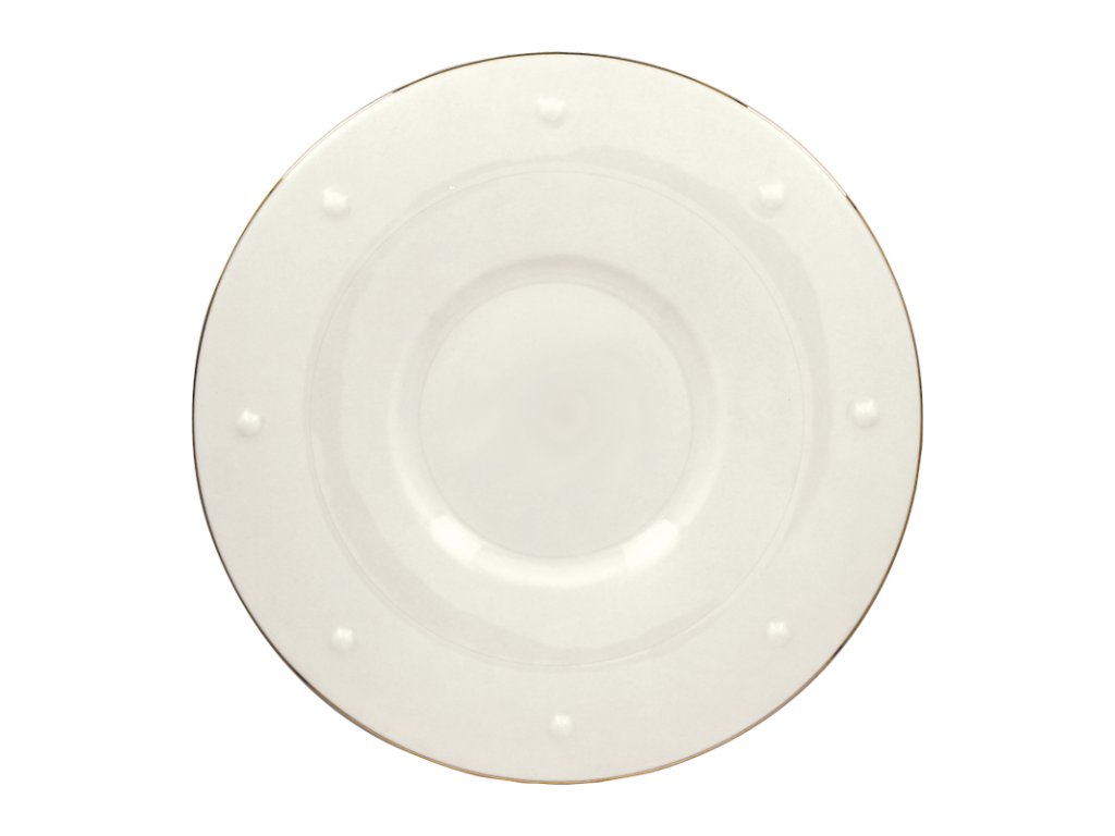 Tento talíř dodává pokrmům pocit luxusu díky propracovanému designu a také uvolňující nádech jako při pohledu na vycházející slunce. Bílé provedení se zlatým okrajem poskytuje parádní plátno pro servírování těch nejlepších kulinářských výtvorů. Kvalitní porcelán přispívá na kvalitě v podobě dlouhodobé životnosti a odolnosti proti poškození.Talíř mělký pr. 31 cm