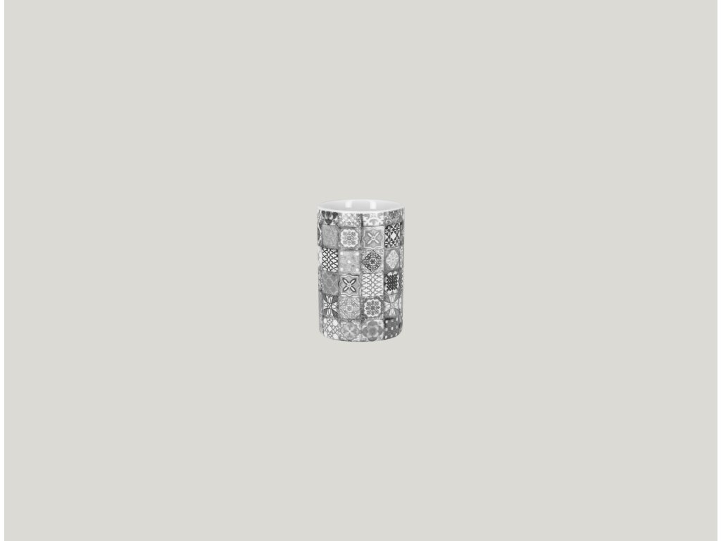 Pohár o objemu 9 cl najde ve vaší kuchyni mnoho využití. Kromě stylového servírování kávy, čaje a dalších nápojů jej můžete využít také jako neotřelý stojánek na slané či sladké tyčinky. Porcelán se vzorem mozaiky v kombinaci se žulou vás zavede do starověkého Řecka a je jako stvořený pro servírování středomořské kuchyně. Kvalitní glazura na povrchu porcelánu zajišťuje dlouhou výdrž i při mytí v myčce nádobí či ohřevu v mikrovlnné troubě.Pohár 9 cl – šedá