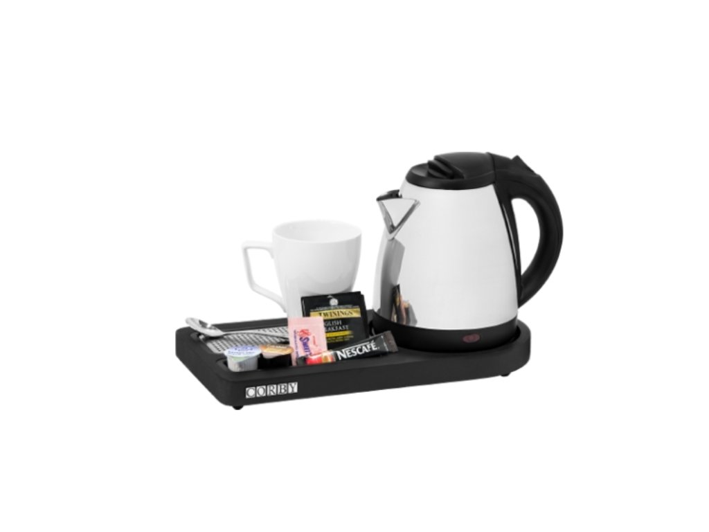 Rychlovarný set Buckingham Compact Corby - černý Rychlovarný set Buckingham Compact v černé barvě má kompaktní rozměr a elegantní vzhled , který snadno zapadne do designu jakéhokoliv pokoje. Je plně certifikovaný s označením CE . Set obsahuje rychlovarnou konvici s objemem 1 l a zabezpečením proti odcizení a podnos z voděodolné desky MDF, který je vybaven gumovými nožičkami proti poškrábání povrchu. Jeho součástí je i snadno vyjímatelná odkapávací miska z nerezové oceli pro snadnější čištění.Zlepšete si den šálkem lahodné kávy nebo čaje kdykoliv na něj dostanete chuť. Stačí jen sáhnout po rychlovarném setu, kde najdete vše, co k přípravě budete potřebovat. Upozornění: Hrnečky nejsou součástí balení. Minimální objednávka: 1 ks Doprava: ZDARMA u objednávek nad 5 000 Kč bez DPH Doplňkové parametry
