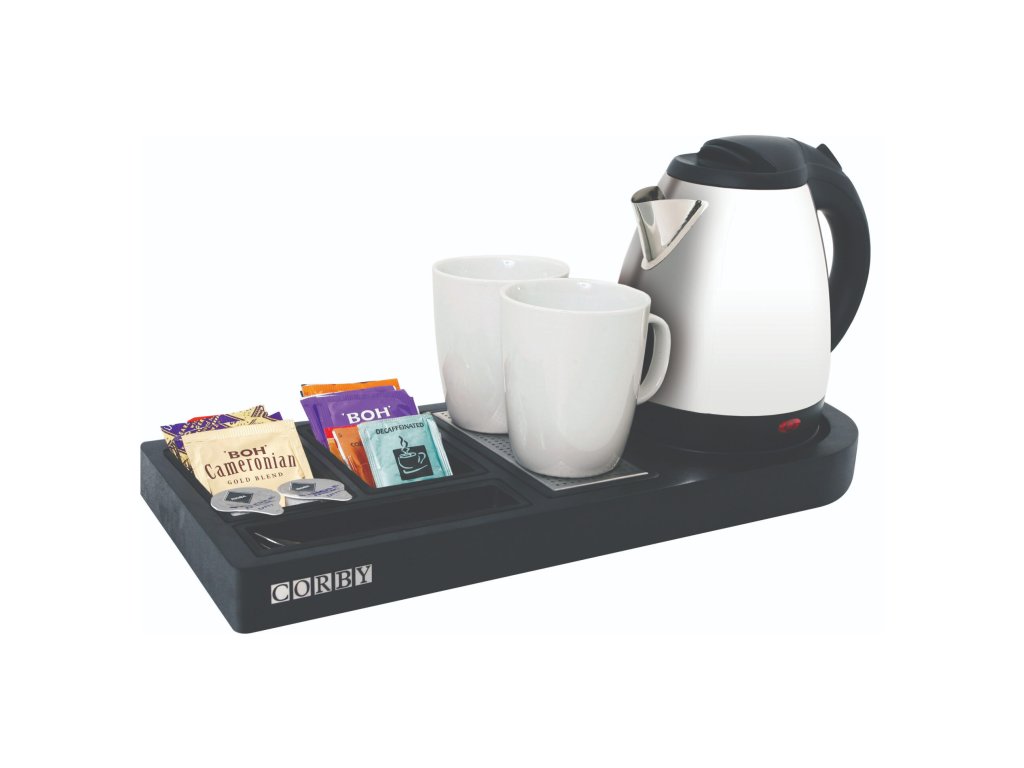 Rychlovarný set Buckingham Standard Corby - Černý Zlepšete si den šálkem lahodné kávy nebo čaje kdykoliv na něj dostanete chuť. Stačí jen sáhnout po rychlovarném setu , kde najdete vše, co k přípravě budete potřebovat.Rychlovarný set Buckingham Standard v černé barvě má kompaktní rozměr a elegantní vzhled , který snadno zapadne do designu jakéhokoliv pokoje. Je plně certifikovaný s označením CE.Set obsahuje rychlovarnou konvici s objemem 1 l a zabezpečením proti odcizení a podnos z voděodolné desky MDF, který je vybaven gumovými nožičkami proti poškrábání povrchu. Jeho součástí je i snadno vyjímatelná odkapávací miska z nerezové oceli pro snadnější čištění. Upozornění: Hrnečky nejsou součástí balení. Minimální objednávka: 1 ks Doprava: ZDARMA u objednávek nad 5 000 Kč bez DPHDoplňkové parametry