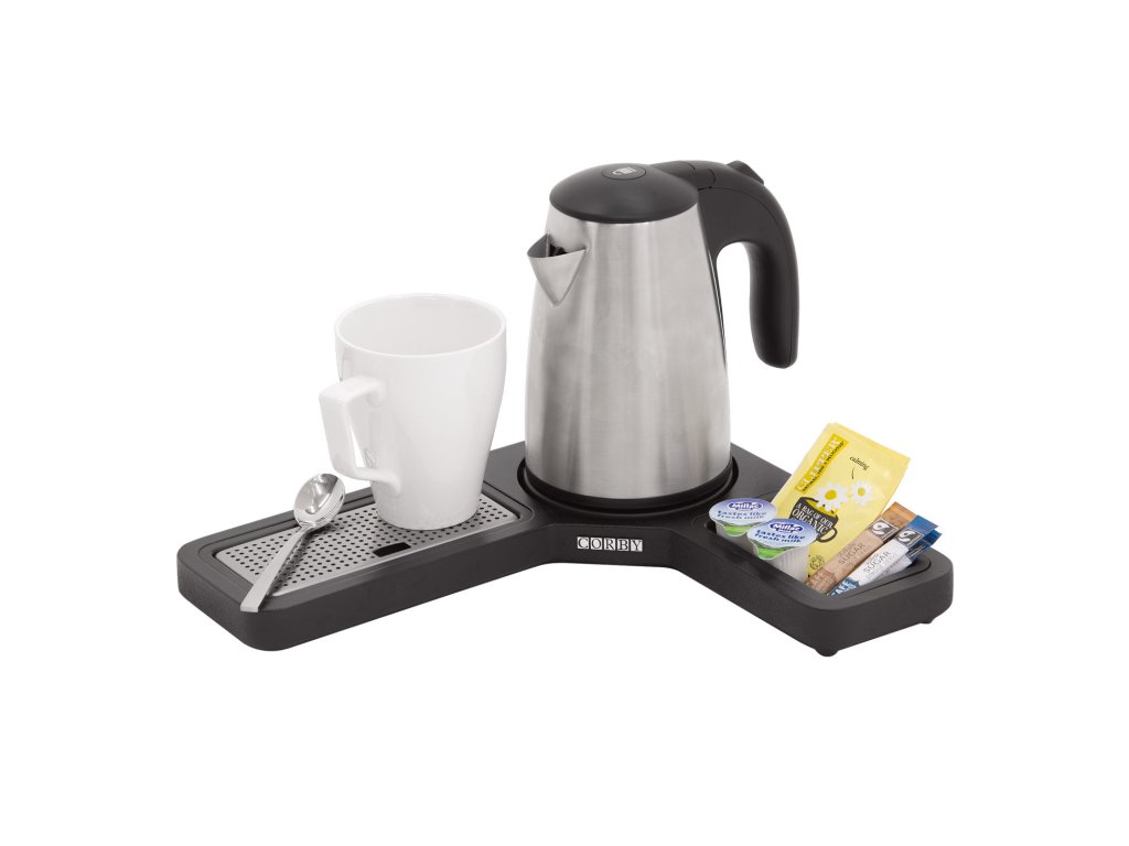 Rychlovarný set Windermere Corby pro konvice Canterbury a Kensington 0.6 l Rychlovarný set Windermere Corby v černé barvě má ojedinělý rozměr s elegantním pravoúhlým vzhledem , který snadno zapadne do každého rohovitého prvku pokoje. Lze jej navíc připevnit šroubem a ochránit ho tak proti krádeži.Zlepšete si den šálkem lahodné kávy nebo čaje kdykoliv na něj dostanete chuť. Stačí jen sáhnout po rychlovarném setu, kde najdete vše, co k přípravě budete potřebovat. Upozornění: Hrnečky nejsou součástí balení. Minimální objednávka: 1 ks Doprava: ZDARMA u objednávek nad 5 000 Kč bez DPH Doplňkové parametry
