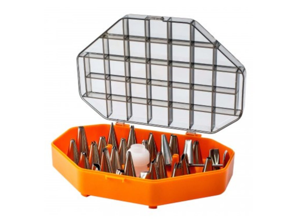 V cukrářství jsou detaily důležité, a proto se vyplatí mít v kuchyni nejrůznější tipy na tyto potřeby. Zdobení dortů představuje náročné umění vyžadující čas a cvik a některé vychytávky vám v tomto nelehkém úkolu skvěle pomohou. Sada cukrářských nástavců vám umožní při pečení vytvořit různé tvary a vzory, díky kterým získáte jedinečný vzhled vašich kulinářských výtvorů.Sada cukrářských nástavců 29 ks