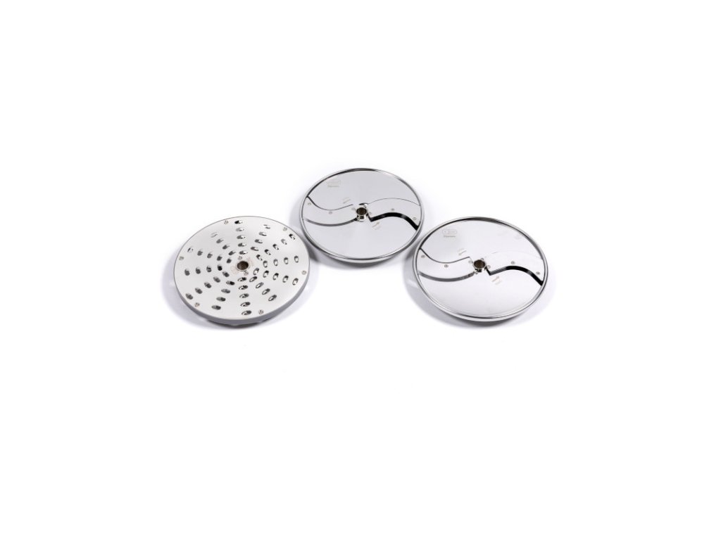 Sada "Pizza" se skvěle hodí pro přípravu surovin na pizzu. Skládá ze tří krájecích kotoučů (1,5 mm, 4 mm) a mřížkového kotouče na strouhání o tloušťce ok 5 mm. Sada je dostatečně univerzální, aby dokázala připravit širokou škálu pokrmů pomocí zařízení řady BLEND & MIX, ke kterým se skvěle hodí. Disky se vyrábí se z nerezové oceli zajišťující jejich odolnost proti korozi, snadné skladování i údržbu (lze jej mýt v myčce na nádobí). Mají také zvýšený výkon díky průměru 225 mm a ten si zasluhuje místo největšího na trhu.Sada disků „Pizza“