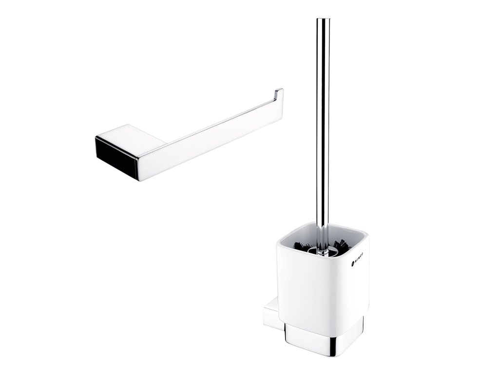 WC sada nástěnná - štětka s keramickým držákem na zeď a držák toaletního papíru ze série Nimco Kibo jsou skvělým doplňkem k WC. Tato sada doplňků k wc obsahuje následující výrobky NIMCO ze série KIBO: Toaletní štětka Ki 14094KN-26 Nástěnný držák s keramickou nádobkou. Rukojeť kartáče chrom, černý kartáč. 1 ks. Držák na toaletní papír Ki 14055E-26 Designový držák wc papíru na zeď, bez krytu. 1 ks.Ki 14094KN-26, Ki 14055E-26 Sada k WC bude koupelně slušet mnohem více, pokud zvolíte i další doplňky série Kibo z nabídky koupelnových a WC doplňků NIMCO.Doplňkové parametry