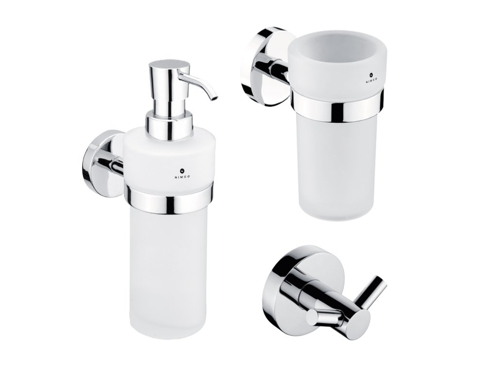 Sada nástěnných koupelnových doplňků - dávkovač mýdla, držák kartáčků, dvojháček na ručníky je skvělým doplňkem do koupelny. Tato sada koupelnových doplňků obsahuje následující výrobky NIMCO ze série UNIX: Dávkovač tekutého mýdla UN 13031W-26 Dávkovač na tekuté mýdlo o objemu 250 ml. Nádobka z matného skla. Pumpička plast/chrom. 1 ks. Držák na kartáčky UN 13058W-26 Nástěnný držák se sklenkou na kartáčky. Sklenka z matného skla. 1 ks. Dvojitý háček na ručníky UN 13053-26 Dvojitý háček na ručníky, župany apod. Materiál chrom. 1 ks. , Sada koupelnových doplňků bude koupelně slušet mnohem více, pokud zvolíte i další doplňky série Unix z nabídky koupelnových a WC doplňků NIMCO.Doplňkové parametry