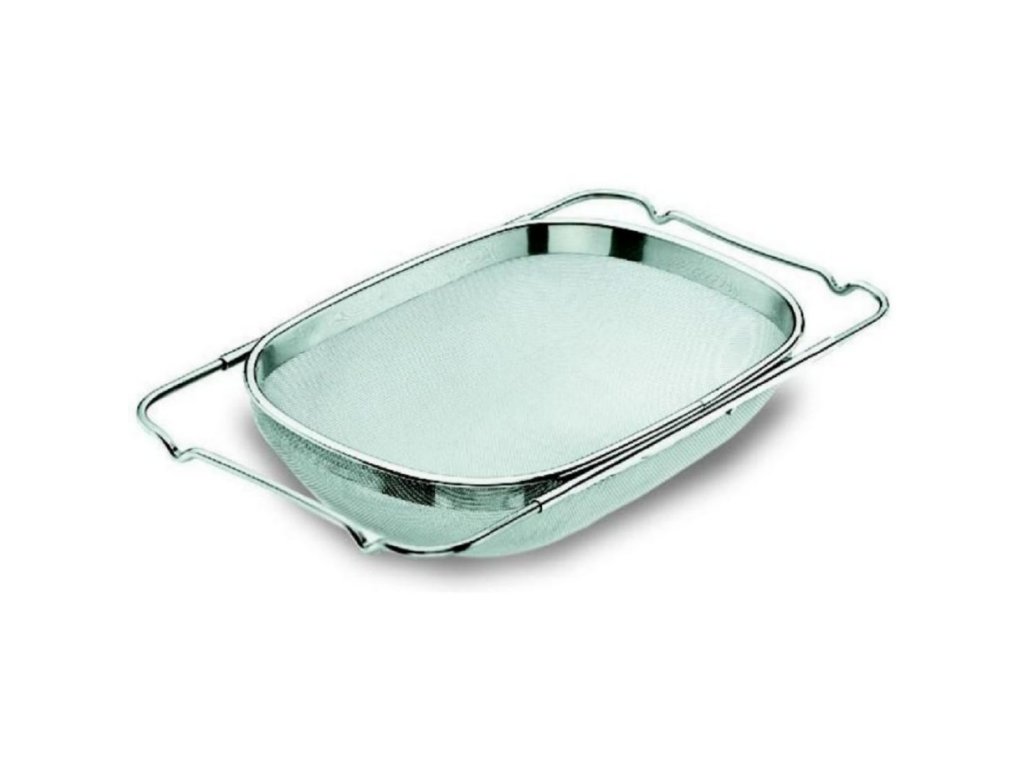 Praktické síto s výsuvnými bočními rukojeťmi je ideální pro oplachování ovoce, zeleniny a bylinek. Potřebnou velikost síta si snadno nastavíte tak, aby vyhovovala velikosti dřezu. Praktický pomocník do každé profesionální i domácí kuchyně.Síto na dřez 34 × 24 cm
