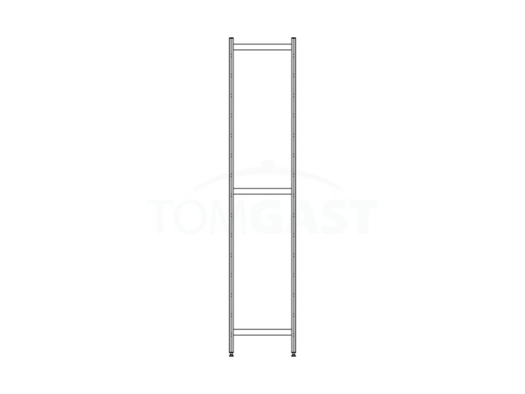 Stojina k regálům do výšky 2100 mm a hloubky 300 mm se vyrábí z hliníkové slitiny a je opatřena výřezy pro uchycení polic. Nožky regálu se dají regulovat.Stojina k regálu