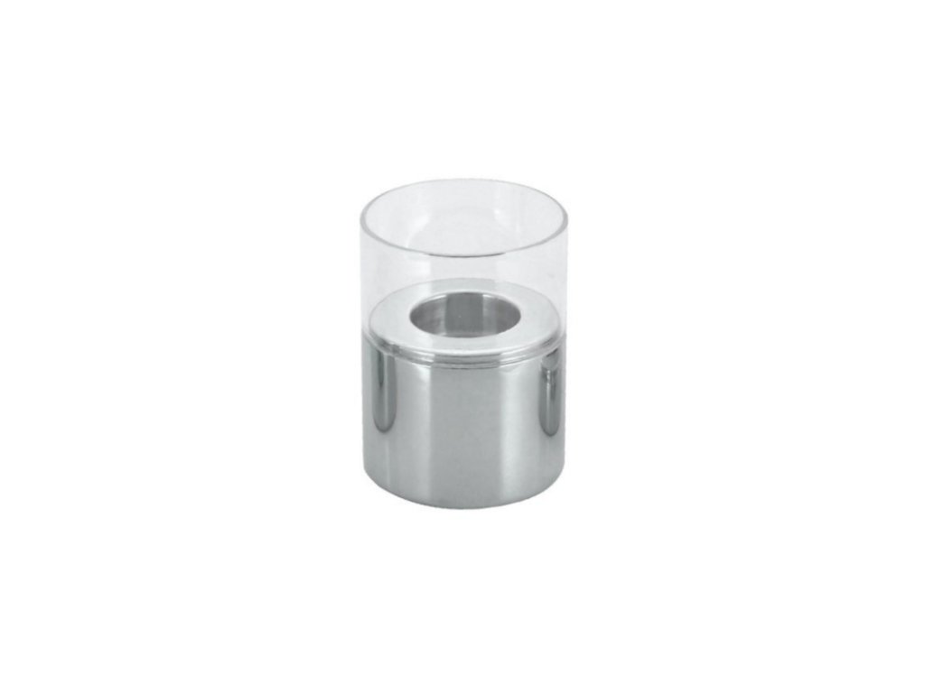 Svícen nerez + sklo 8x13,5 cm
