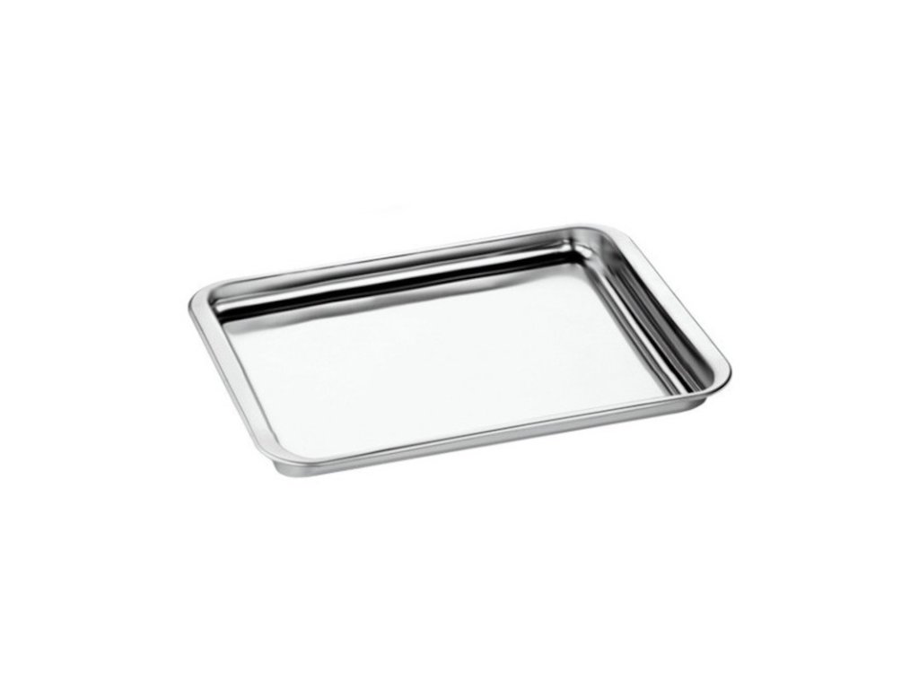 Obdélníkový tác vyrobený z nerezové oceli se skvěle hodí do různých bufetů, rautů či na nějaké události. Vyniká svou elegancí a vysokou kvalitou a lze ho umývat v myčce nádobí. Má vestavěné rukojeti pro snadnější použití. Skvěle na něm vyniknou jednohubky či chlebíčky.Tác obdélníkový nerezový 30 × 21 cm