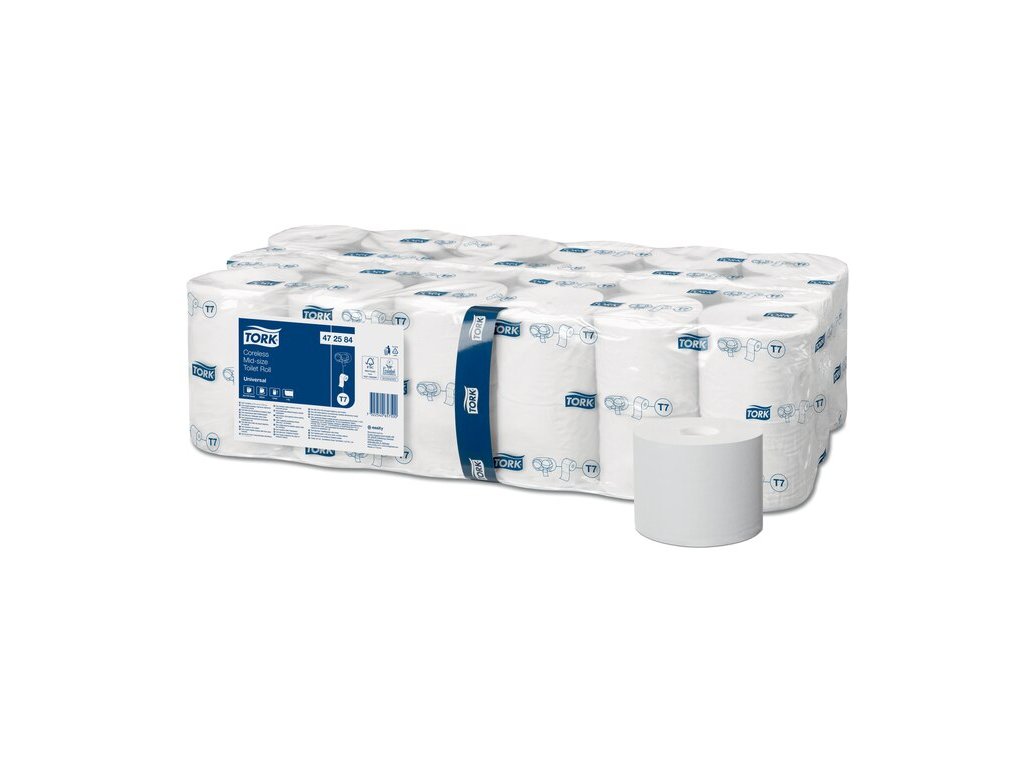 Tork Mid-Size systém s bezdutinkovým toaletním papírem využívá bezdutinkové, kompaktní role, které nabízejí více papíru a současně méně odpadu. Tork Mid-Size bezdutinkový toaletní papír Universal splňuje základní potřeby toalet a umýváren a zároveň nabízí dobrou kvalitu za přiměřenou cenu. Je nejvhodnější pro prostory s nízkou až střední návštěvností. Hodí se do Tork Twin Mid-size zásobníku na bezdutinkový toaletní papír v roli.Doplňkové parametry