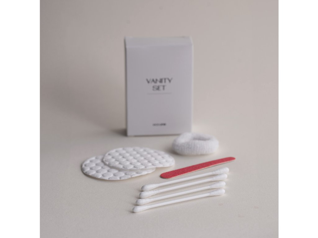VANITY SET ECO ALCHEMIST BOHÉME I na ty nejzákladnější věci se při balení často zapomene. Vyřešte svým hostům jednu starost navíc prostřednictvím hygienického setu, který jim poskytne potřebné pohodlí při každodenní péči o sebe sama. Recyklovatelný hygienický set z řady české značky Alchemist Bohéme obsahuje pár nezbytností pro denní rituály, které ocení každý host. V setu najdete 2 odličovací tamponky, 4 vatové tyčinky, pilníček na nehty a gumičku na vlasy. Papírová krabička je navržena neutrálně bez loga Alchemist Bohéme tak, aby ji bylo možné nenápadně začlenit i do řady s jinými kosmetickými značkami, které ve svém ubytovacím zařízení používáte. Navíc je biologicky rozložitelná z papíru s certifikátem FSC kontrolovaného ekologického zemědělství. Používáním ekologických materiálů přispíváte k ochraně životního prostředí. Minimální objednávka / počet kusů v balení: 250 Doprava: ZDARMA u objednávek nad 5 000 Kč bez DPHDoplňkové parametry