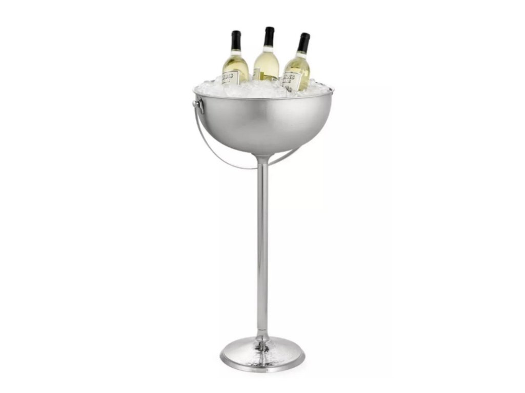 Kulatý stojan i s vědrem skvěle poslouží pro moderní a vkusné chlazení láhví s vínem. Nerezová ocel poskytuje kvalitu a jednoduchou ruční údržbu. Celkový design stojanu okouzlí svým půvabem každé oko.Vědro a stojan 9,8 l