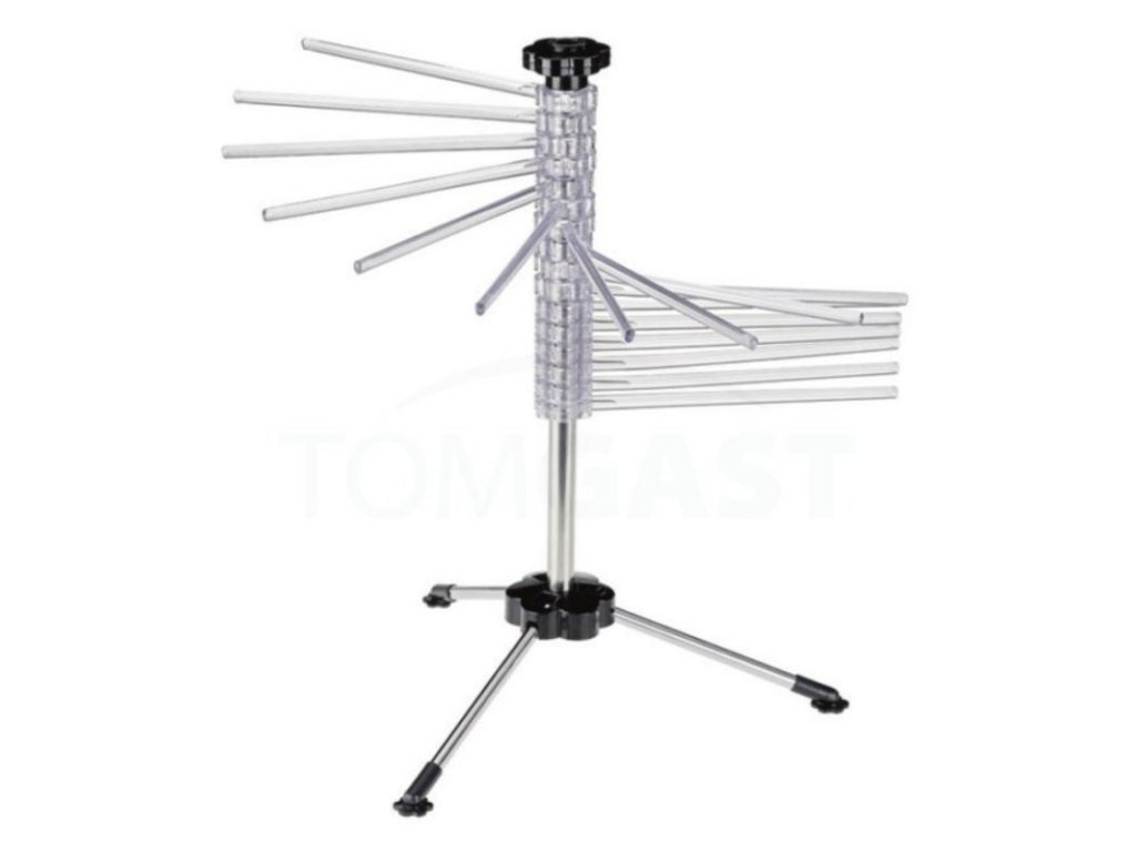 Skvělý pomocník pro sušení těstovin. Vyrábí se v nerezovém provedení a snadno i rychle se sestavuje. Zasunovací transportní tyčky umožňují jednodušší navěšení a přenášení vytvořených těstovin.Věšák na sušení těstovin