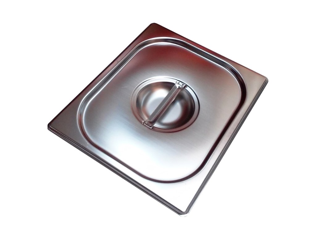 Víko na gastronádoby Standard se také vyrábí z nerezové oceli 18/10 (18 % niklu, 10 % chromu), která zaručuje jeho vysokou odolnost a dovoluje ho umýt v myčce. Víko můžete používat při vaření i při výdeji jídla.Víko na gastronádoby Standard bez úchytů GN 1/6