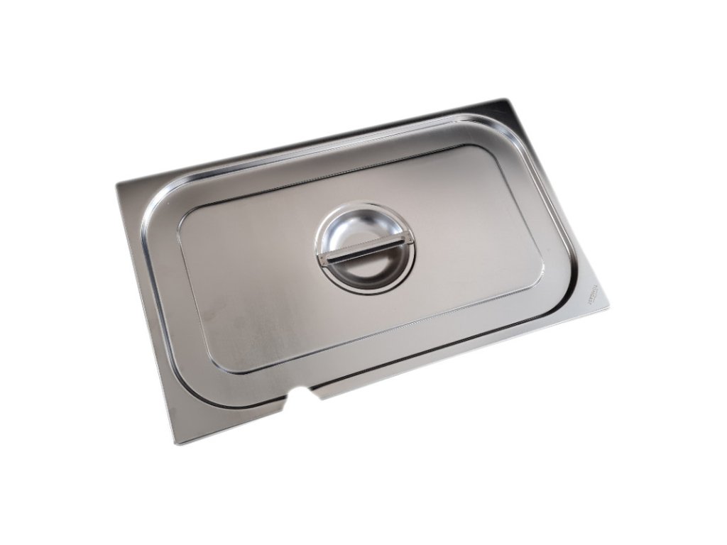 Víko na gastronádoby Standard se vyrábí z nerezové oceli 18/10 (18 % niklu, 10 % chromu), která zaručuje jeho vysokou odolnost a dovoluje ho umýt i v myčce nádobí. Víko můžete používat během vaření i při výdeji jídla a má výřez na naběračku, což představuje praktickou vychytávku a pomoc při přípravě i podávání pokrmů.Víko s výřezem na naběračku GN 1/1