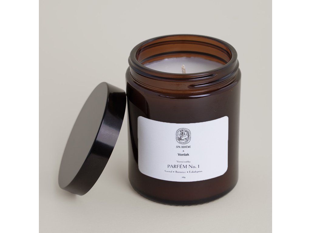 VONNÁ SVÍČKA 140 G SPA BOHÉME PARFÉM NO. 1 Vonná svíčka ve skle ryze české výroby přináší do okolního prostředí intenzivní dřevitou vůni, jež povzbudí smysly svěžími tóny citronu. Tato vůně se postupně rozvíjí do aromatického srdce eukalyptu, borovice a fialky, doprovázené teplými kořeněnými tóny. Zanechává prostory naplněné bohatou esencí santalového dřeva a pačuli. Minimální objednávka: 1 ks Doprava: ZDARMA u objednávek nad 5 000 Kč bez DPHDoplňkové parametry