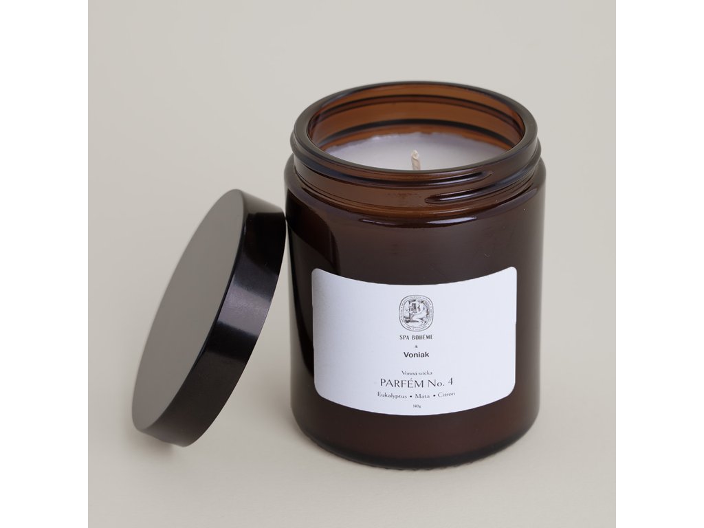 VONNÁ SVÍČKA 140G SPA BOHÉME PARFÉM NO. 4 Vonná svíčka ve skle ryze české výroby přináší do okolního prostředí intenzivní eukalyptovou vůni, ve svrchních tónech se prolínající se svěží mátou s nádechem citronu. Zanechává prostory naplněné bohatou esencí energizující vůně v doprovodu santalového dřeva a pačuli. Minimální objednávka: 1 ks Doprava: ZDARMA u objednávek nad 5 000 Kč bez DPHDoplňkové parametry