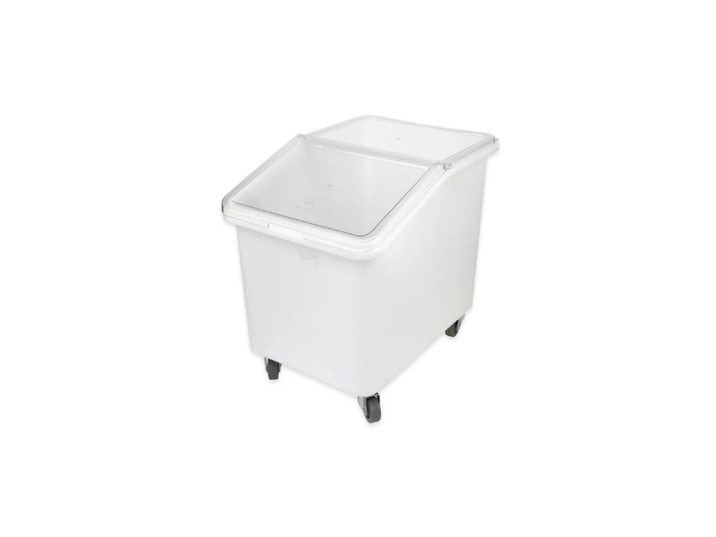 Tento vozík se ideálně hodí pro skladování suchých, sypkých surovin, jako je mouka, cukr a jiné produkty. Je navržený pro jednoduché použití – posuvné, průhledné víko umožňuje snadnou a rychlou manipulaci i identifikaci obsahu. Kromě toho splňuje hygienické podmínky a bezpečnost pro styk s potravinami. Díky materiálu schváleného FDA se nemusí vkládat další sáčky na odpad. Svým tvarem a proporcemi se vejde pod standardní pracovní stoly. Svou odolností a všestranností představují vhodnou volbu v jakémkoli stylu restaurace.Vozík na potraviny 140 l, 55 × 75 × 71 cm