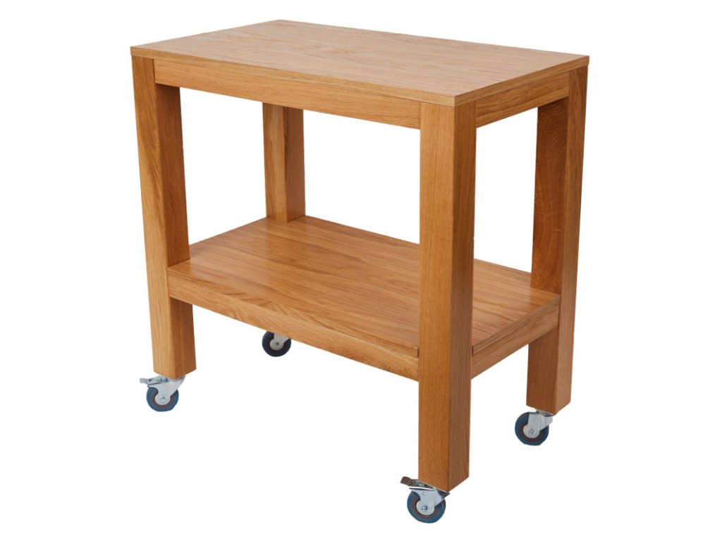 Servírovací vozík skvěle usnadňuje práci číšníkům při obsluze zákazníků. Vyrábí se z dubového dřeva a je vybavený čtyřmi otočnými kolečky pro snadnou manipulaci a dvěma brzdami pro větší bezpečnost. Lakovaná dubová dýha poskytuje výjimečnou odolnost vůči všem škodlivým vnějším faktorům a zároveň zajišťuje rychlé a snadné čištění vozíku.Vozík servírovací 82 × 46 × 85 cm
