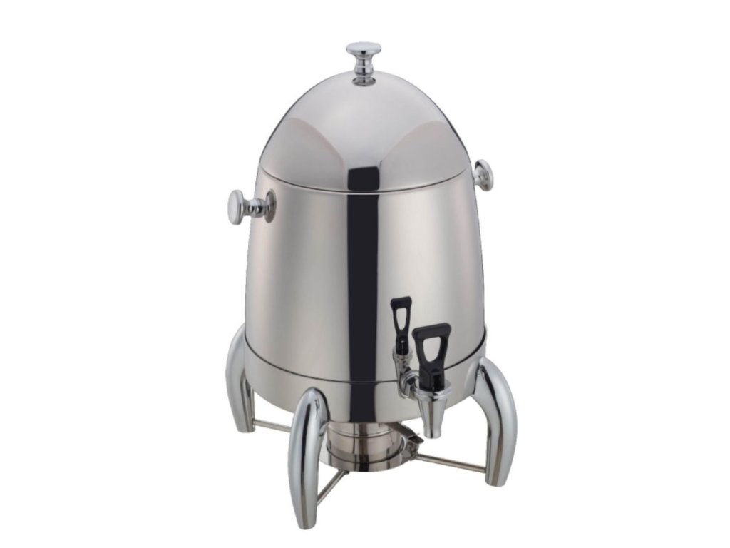 Tento zásobník na nápoje v objemu 12 l se vyrábí z vysoce leštěné nerezové oceli. Disponuje stabilní základnou a pohodlnými rukojeťmi. Kromě toho má také speciálně profilované kryty odvádějící kondenzát do vaničky, což znamená, že voda nekape na nádobí nebo stůl. Vyhřívá se pomocí pasty nebo elektrického ohřívače s plynulou regulací teploty. Ideální volba pro podávání teplých nápojů.Zásobník na nápoje 12 l